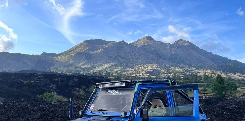 Kintamani Jeep is a tour experience climbing Mount Batur with a 4WD Jeep with Driver. In addition to climbing Mount Batur with an Open Jeep off road car, you can also surround the Black Lava-Black Sand in the belly and foot of Mount Batur.